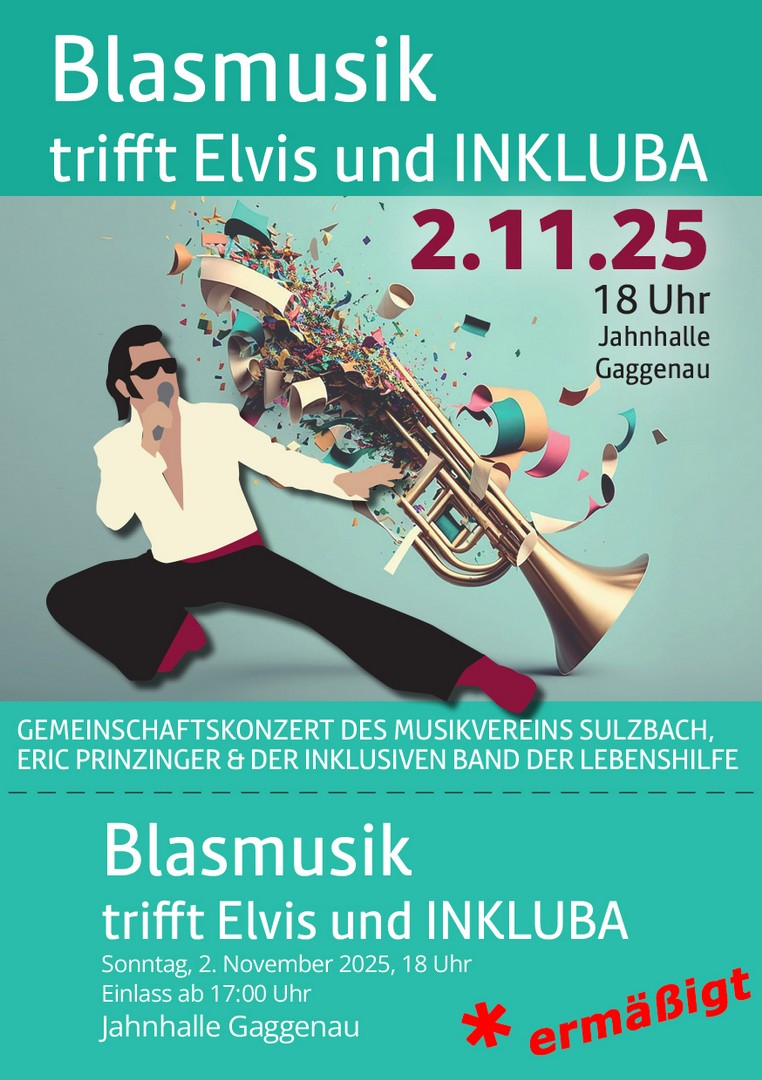Ihre Eintrittskarte für unser Konzert "Blasmusik trifft Elvis und INKLUBA" am 02.11. in der Jahnhalle in Gaggenau.
