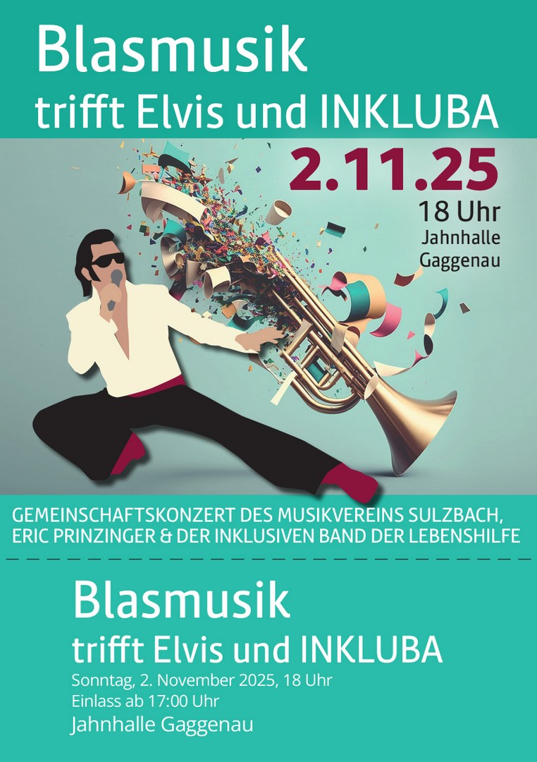 Ihre Eintrittskarte für unser Konzert "Blasmusik trifft Elvis und INKLUBA" am 02.11. in der Jahnhalle in Gaggenau.